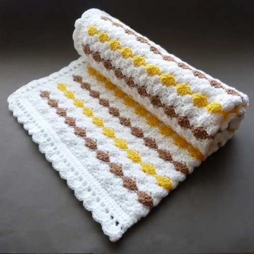 Learn how to make this warm and cuddly baby stroller blanket with a shell design. You can also use this comfy for cribs, cots, or prams.