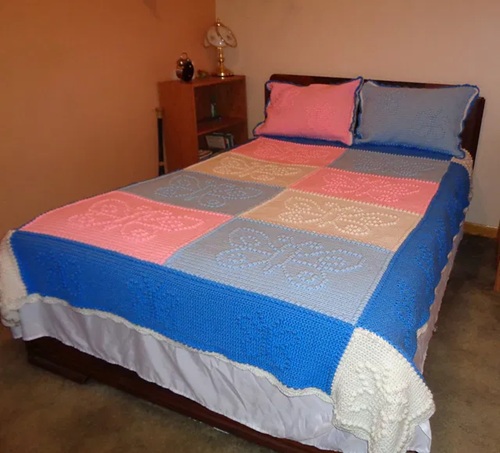 How about this Butterfly bedspread? Glee Workman shared this amazing project. Worked in one piece with simple stitches like sc, popcorn, and bobble in one piece without any sewing or joining.