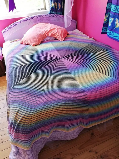 Catkitbob Designs had made this mandala bed cover blanket. This project comes with an intermediate difficulty level. Experienced crocheters must take this on.