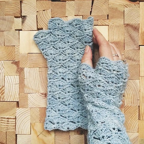 Maaikes fingerless gloves are very delicate and pretty. In appearance, they have a shell like texture. Crejjtion has provided UK and US stitches for creating it. Check.