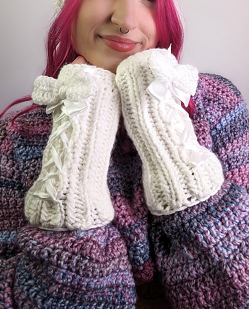 7. Crochet Fingerless Gloves with Bow
