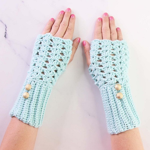 3. Dainty Shells Fingerless Gloves