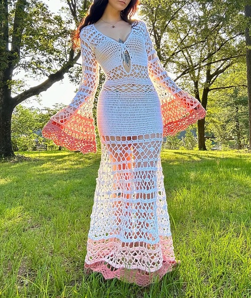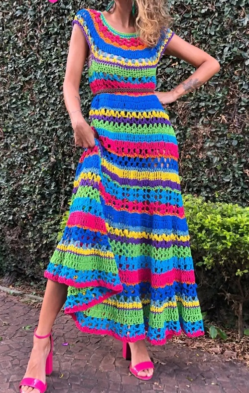 Nothing can beat the trend and style of these Crochet Colorful Maxi Dress Free Patterns. Each one here is seasonless and closet stable.