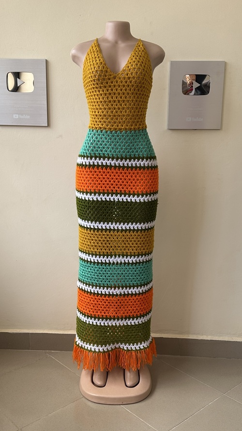 Those who feel scray while working with a maxi dress, now they will not because this one by Katerina is simple to make using dc, dc inc, and circular rounds only.