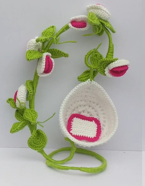 Nthongnhut made this pea flower swing crochet pattern in a simple way. Watch the YouTube tutorial to know which part is stitches first, then what is next, and how to finish.