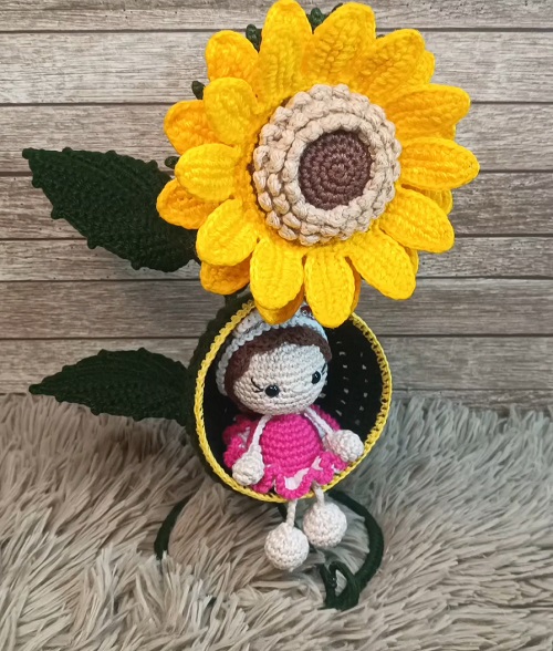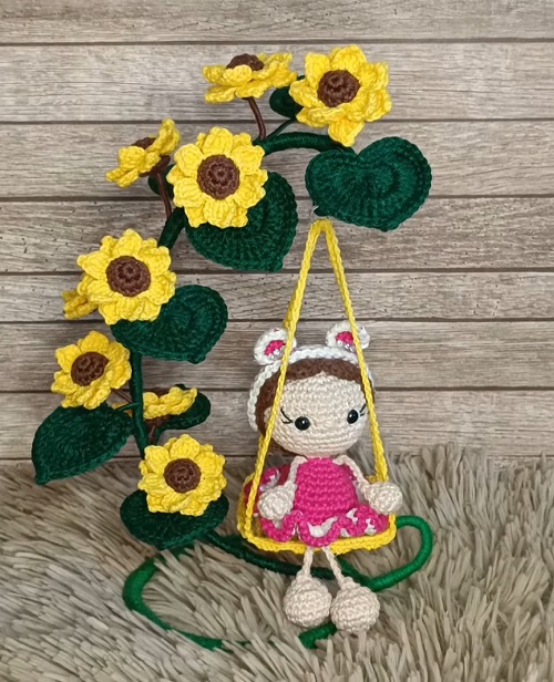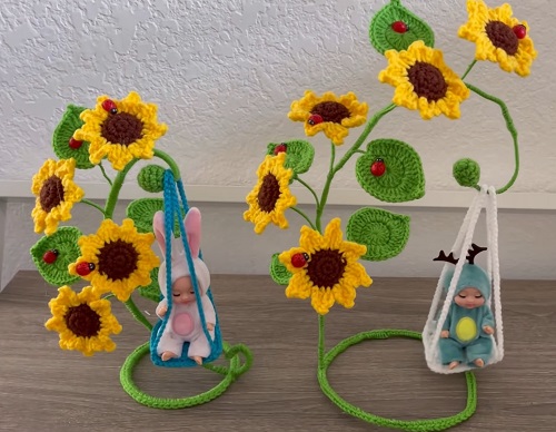 The above sunflower swing pattern is designed by lizzycrochetpatterns for your loved ones. Plus, its suitable to gift at a baby shower as well.