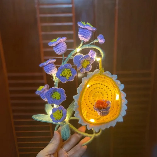 How about this one? I. The pattern features crocheted lily of the valley blooms, glowing lights, a swing, and other things.