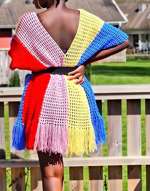 Classic V dress with fringes is here, the outfit has a cheerful color, making it one of a kind, not to be missed. Get the step-by-step instructions for creating this from Purecrochets.