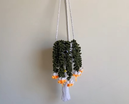 Learn how to crochet this stunning hanging plant with dual-toned flowers in this helpful visual tutorial. This handcrafting project is suitable for both beginners and experienced crocheters.