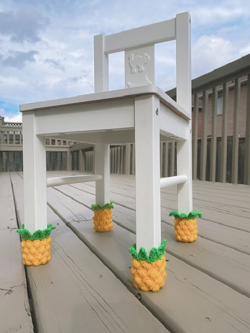 Frances Yoongs pineapple chair socks are great for decorating any room. The pattern is easy to make and uses beginner-friendly stitches like ch, sc, st, scinc, hdc, dc, and ps!