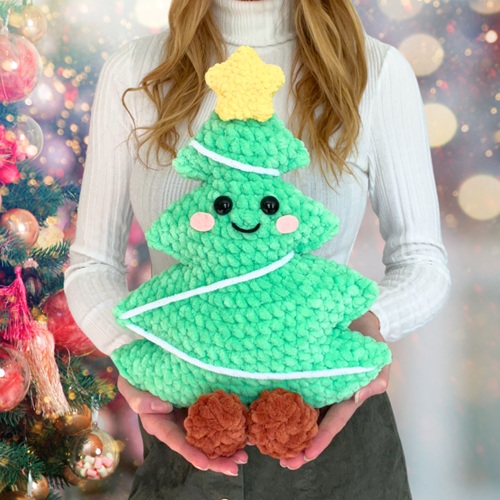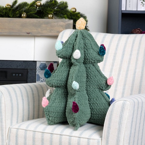 How about this festive crochet tree pillow? It has a 3D shape, twinkling lights, a shining star, and other details. Yarnspirations crafter made it 18ƒ‚‚³ tall.