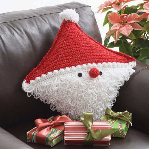 Design a jolly Saint Nick pillow using easy crochet skills for your house. This pillow will look great in a kids room or anywhere where you have done your Christmas decorations. By Yarnspirations.