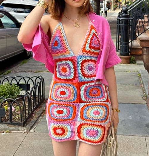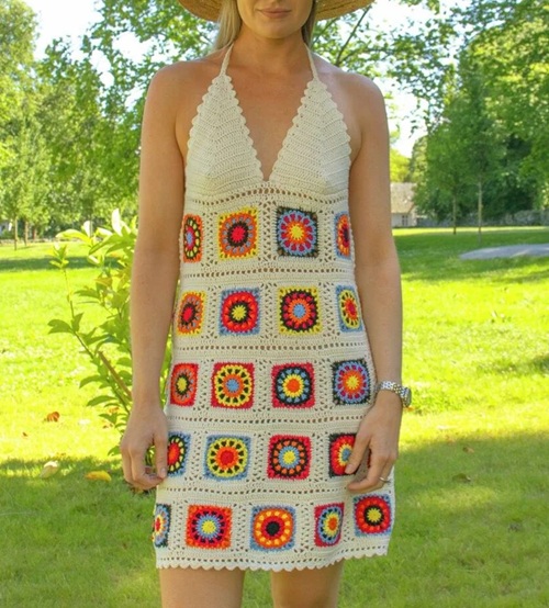 1. Crochet Boho Granny Square Mini Dress