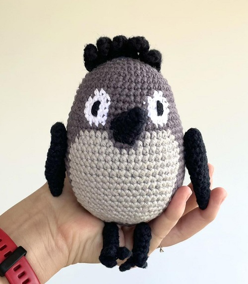 Designer amigurumi_amos sparrow version is made with a combination of striking colors! Black body and beak, orange face! Super amazing combinations. Download the free PDF!