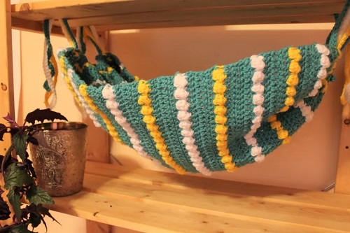 A handmade crochet design to elegantly suspend and display fruits. This DIY hammock ensures ample airflow, keeping fruits fresher for longer.6. Cute Hammock Crochet Pattern for Pets