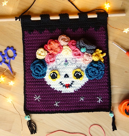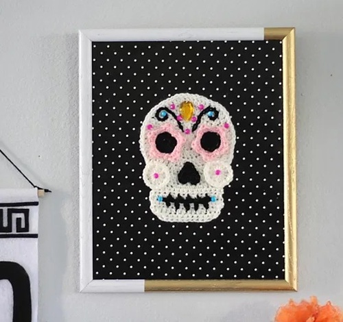 8. Crochet Sugar Skull Wall Decor