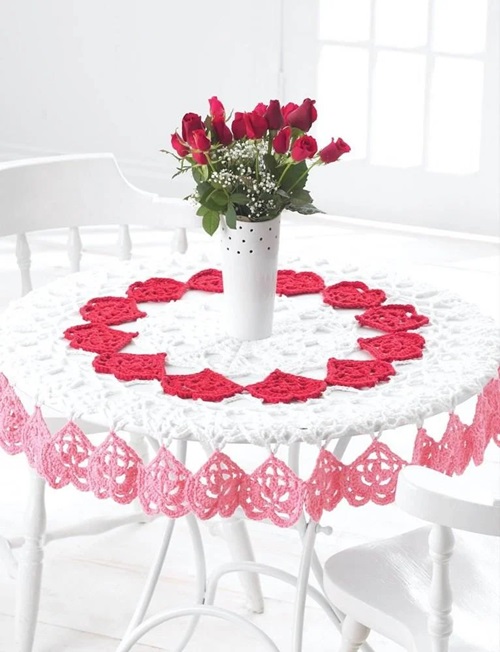 Nothing can make Valentines Day home decor more romantic than this crocheted tablecloth with heart motifs. Want to make one? Check out this step-by-step tutorial.