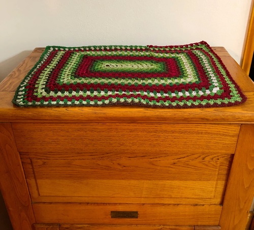 Bring holiday vibes to your coffee or end table with this rectangular tablecloth in traditional red and green shades. Feel free to increase or decrease the size by adding rounds until you reach the desired size.