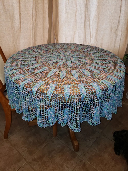 The unique colorful motifs of this Arabian Nights tablecloth make it stand out in this list. Each motif measures around 5 inches across the center, from picot to picot.