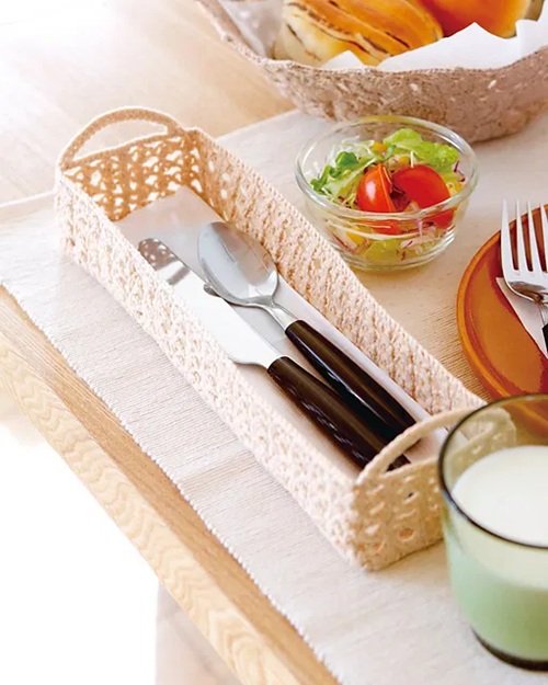 This useful cutlery holder for dinner parties will surely keep your things organized stylishly! Its finish size is 3 X 4.5 Inches. Crochetncreate shares it!