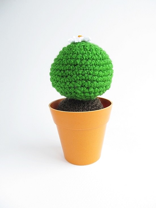 This green crochet cactus, covered with a tiny hint of red and yellow flowers, can brighten up any plantless room. Its pattern‚ is worked in a continuous spiral without joining the rounds.