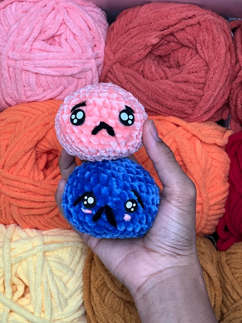Not always a happy face absorbs the pain, sad faces do wonders. Design these Worry Wart stress balls by Vivian of TMC to test. The pattern uses basic crochet stitches and the amigurumi technique.