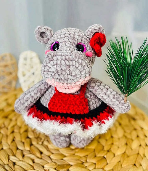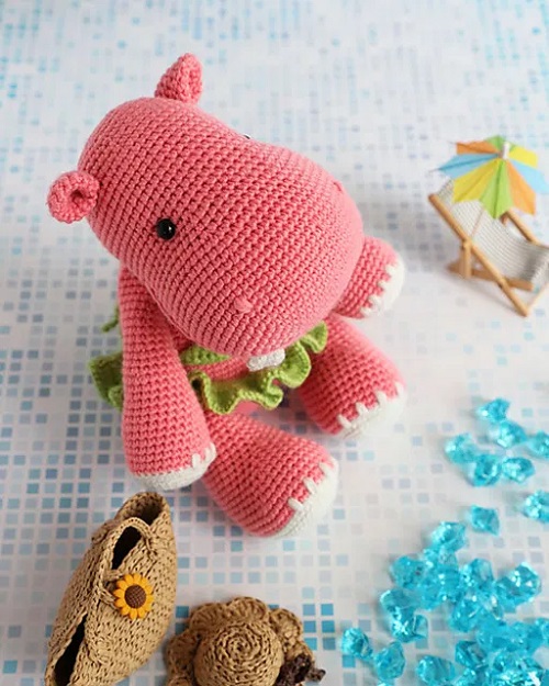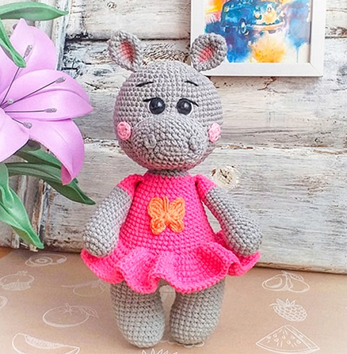 5. Crochet Hippo In Pink Dress