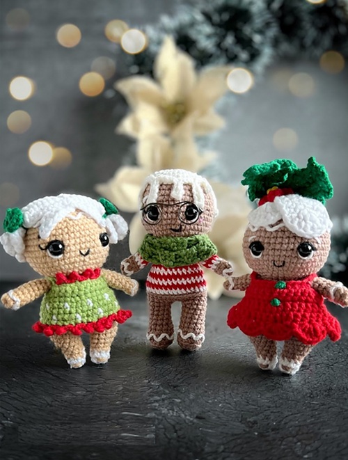 These 3 Gingerbread Party Dolls require you to engage with beginner to intermediate level crochet skills to design. Also be used as bag charms, keychains, or .