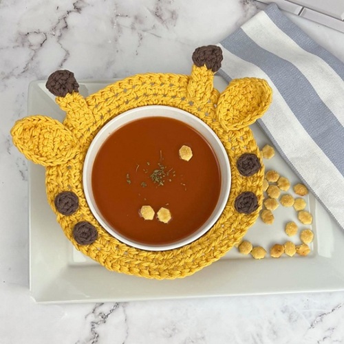 Keep your sips warm and tables mark free with this giraffe . For making follow Katerina Cohees Ravelry page.