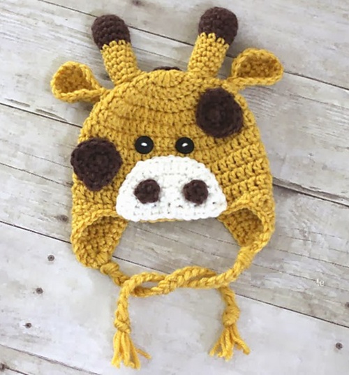 This giraffe hat by Sarah is available in different sizes. You just have to be skilled in sc, hdc, dc, and sc dec to whip up this easily. SIMPLE!