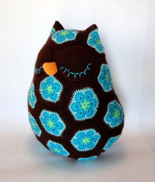JOs Crocheteria is the talented crafter behind this gorgeous African flower owl plush. It measures around 15ƒ‚‚ tall and 11ƒ‚‚ wide.