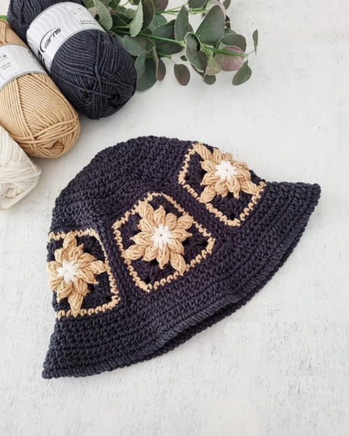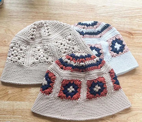Jess shared this packable granny square bucket hat crochet free pattern. Crafted with tightly sitting with ch, dc, hdc, sc, sl, and st to achieve the shown structured fabric look.