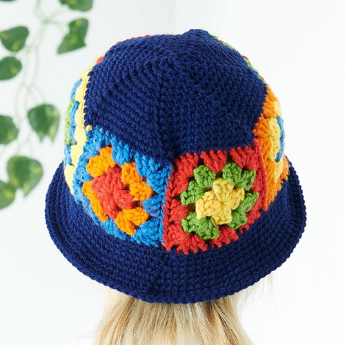 Its time to brighten up your day with this colorful bucket hat. It is stitched with granny squares, crocheting in rounds, seaming, and more by yarnspirations.