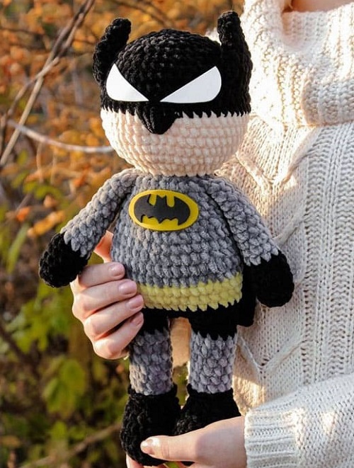 Indulge in the art of amigurumi crafting and create these charming Batman plushies, tailor-made for the young dark knight enthusiasts in your household. As a result of using amigurumi techniques, you can craft these adorable little vigilantes, adding a touch of handmade magic to their playtime or room decor.3. DIY Little Batman Crochet Pattern
