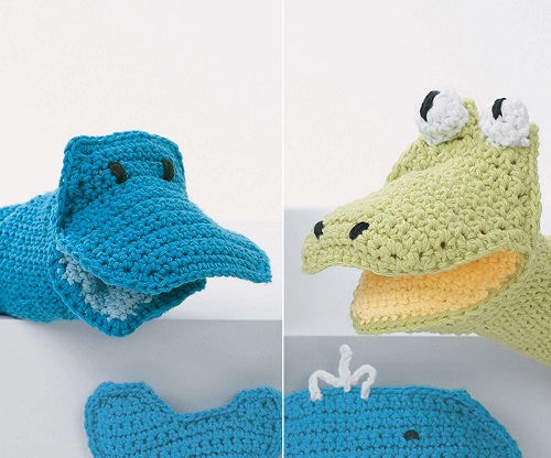 These baby bath buddies will double your kids fun! Yarnspirations free guide mentions the stitches and supplies for the whale and frog separately. Do check!