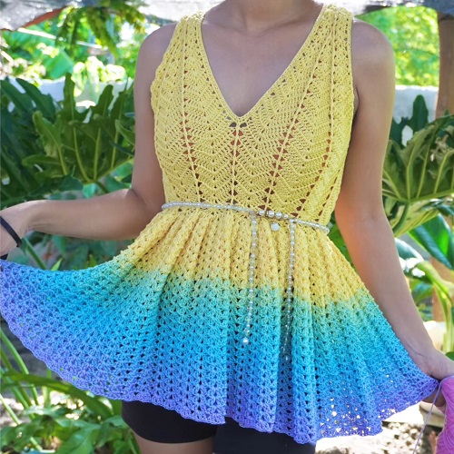 Know how to work with chains, including low points, high points, and more. So, you must grab the details of this free pattern by Circulo. The color choice of this top makes it eye catching and unavoidable.
