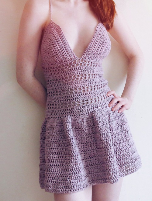 Thecrocheting crafted this mini dress using ch, sl st, inc, dec, sc, and dc crochet stitches. It is an amazing option; you can go for it.