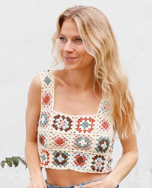 6. Crochet Granny Square Flower Crop Top
