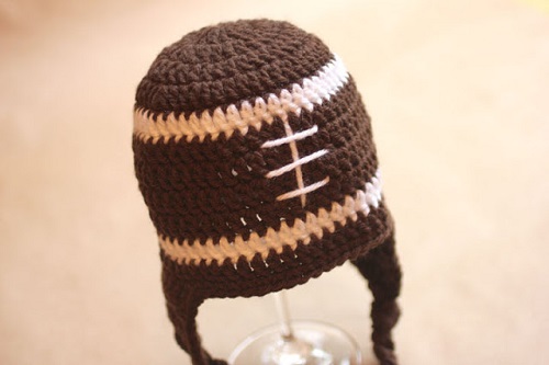10. DIY Ear Flap Crochet Hat with Football Pattern