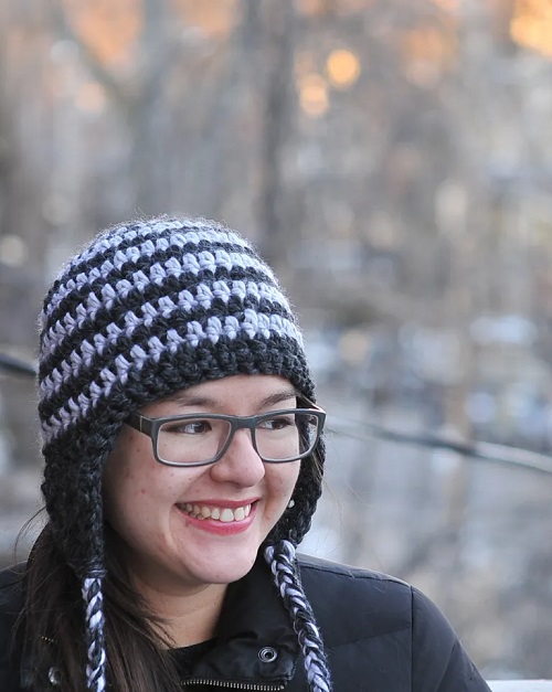 2. DIY Crochet Dual-Toned Ear Flap Hat