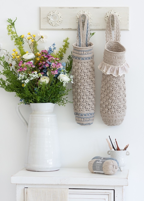 Complete your farmhouse-style kitchen interior with this crochet plastic bag dispenser featuring lacey floral stitches. Its the perfect means to tidy up your messy kitchen drawers filled with grocery bags.