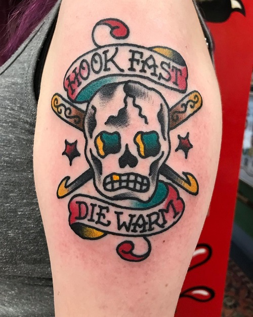 On the darker side, the crochet hook skull tattoo merges the edginess of a skull with the finesse of crochet. This contrasting design creates a unique juxtaposition of life and art, symbolizing that beauty can be found even in the most unexpected places.
