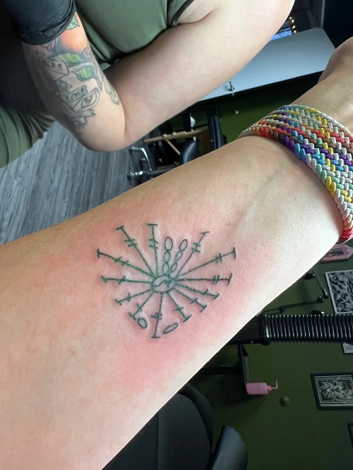 To begin your journey into the world of crochet-inspired tattoos, consider the crochet hook tattoo. Firstly, this choice is a simple yet powerful statement, symbolizing the very essence of the crochet craft.Moreover the crochet hook is the tool that weaves dreams into reality. Creating intricate patterns and beautiful designs with a simple flick of the wrist.
