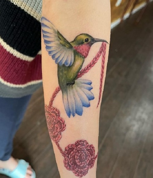 Embracing the wonders of nature, the crochet hummingbird tattoo offers a unique blend of the delicate intricacy of crochet with the grace and freedom associated with the hummingbird.