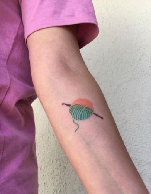 Colored yarn ball tattoo infuses your crochet art with vibrant and eye-catching hues, turning your ink into a vivid masterpiece.This design is a celebration of color and creativity, additionally demonstrating your ability to transform plain yarn into something visually stunning.