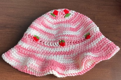 Step out in style and embrace the cuteness of strawberry kisses with this fashionable bucket hat thats sure to turn heads!