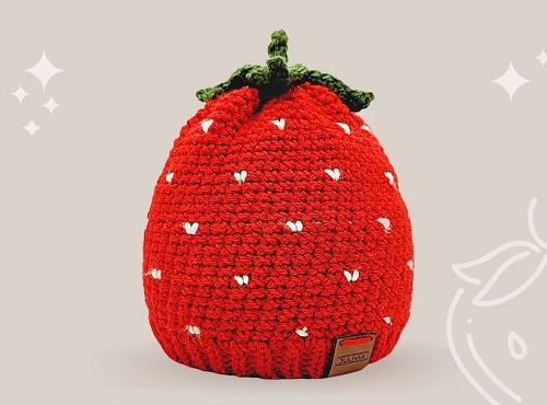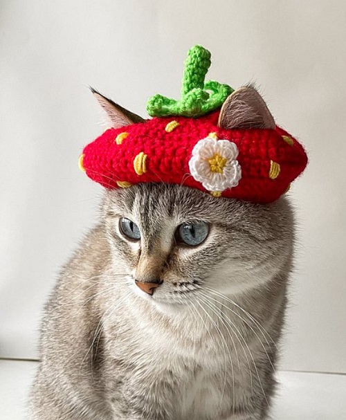 If you are a cat parent who loves strawberries, this pattern is a purr-fect choice. It features cute cat ears on top of a strawberry-inspired beanie, creating a playful and stylish look.