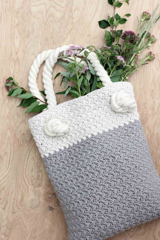 Neutral colors and intricate texture blends up here to create this tote bag. This beginner-friendly pattern uses single and double crochet.
