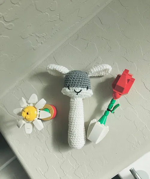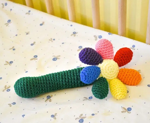 You will be going to love this flower version of the baby rattle. It is made by Julia Simpson with beginner skills.