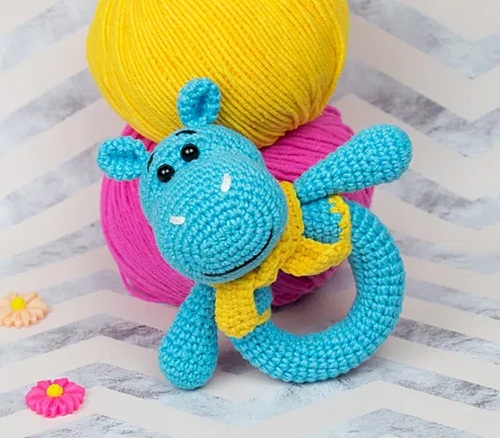 This Hippo amigurumi rattle is a cute and cuddly companion for babies, and also good for kids to play. Amigurumi Today kept it 5ƒ‚‚³ only; you can increase or decrease the size.